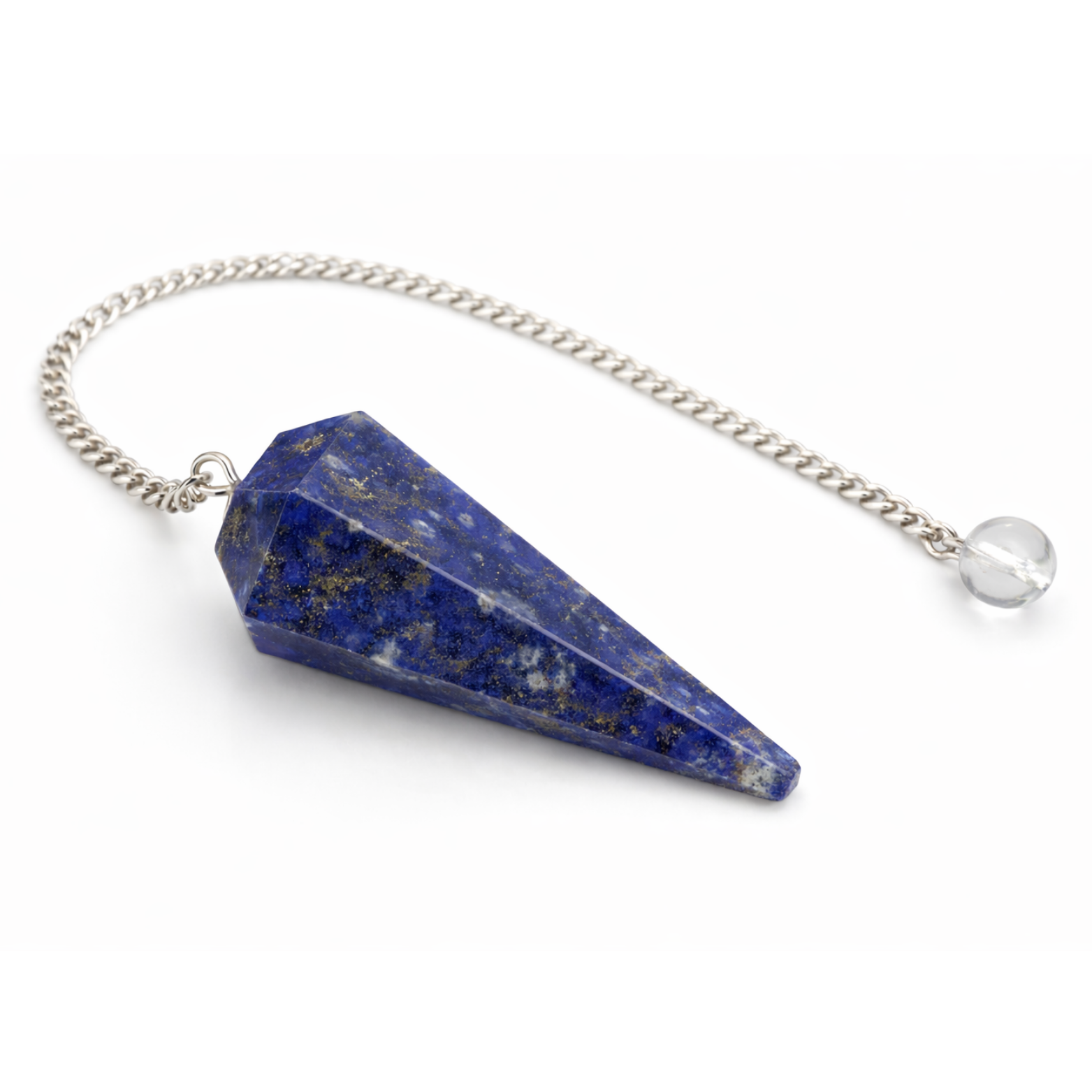 The Lapis Lazuli Pendulum is a powerful tool for spiritual connection and inner guidance, used for dowsing, decision making, and energy channeling .