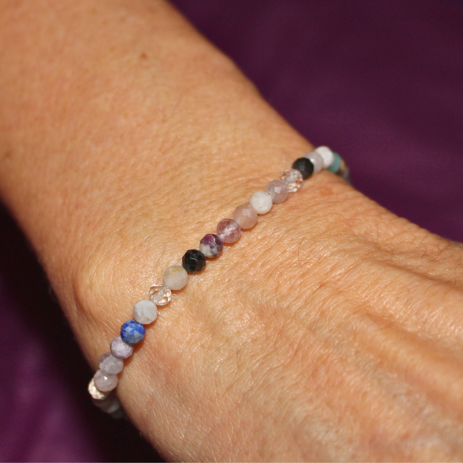 La turmalina multicolor es conocida por su capacidad para proteger, transmutar energías densas y equilibrar los chakras, mientras que los cuarzos ayudan a amplificar la energía positiva y la intención. Juntas, forman una pulsera ideal para el uso diario, aportando estabilidad, vitalidad y armonía.
