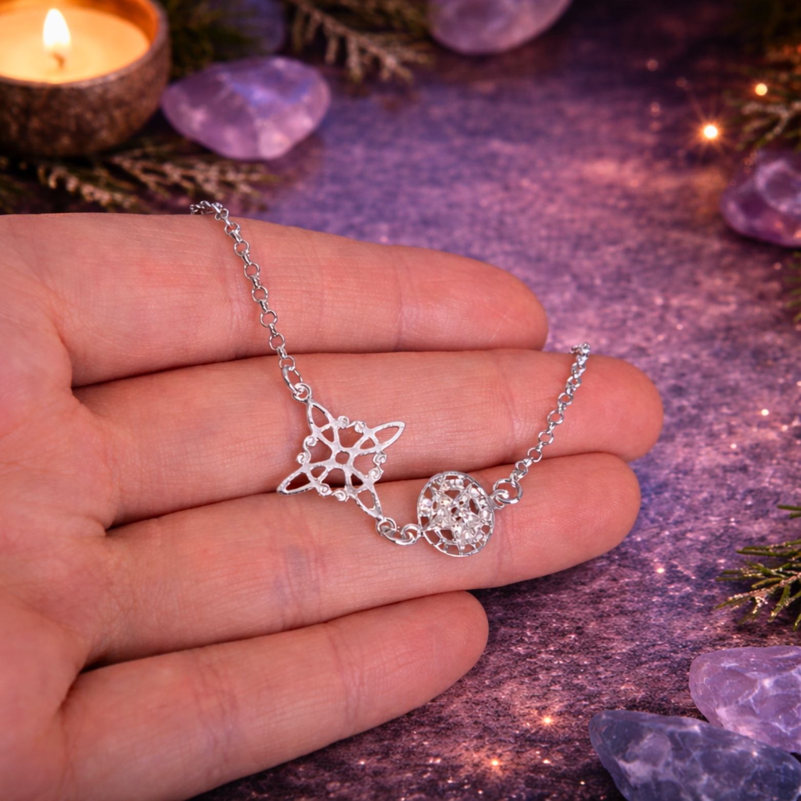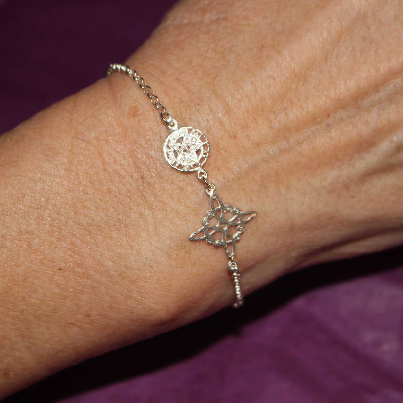 Unidos en una elegante cadena rolo de 2 mm en Plata de Ley 925, con 18 cm ajustables + 3 cm de alargador, esta pulsera se convierte en un escudo espiritual discreto, resistente y perfecto para uso diario.