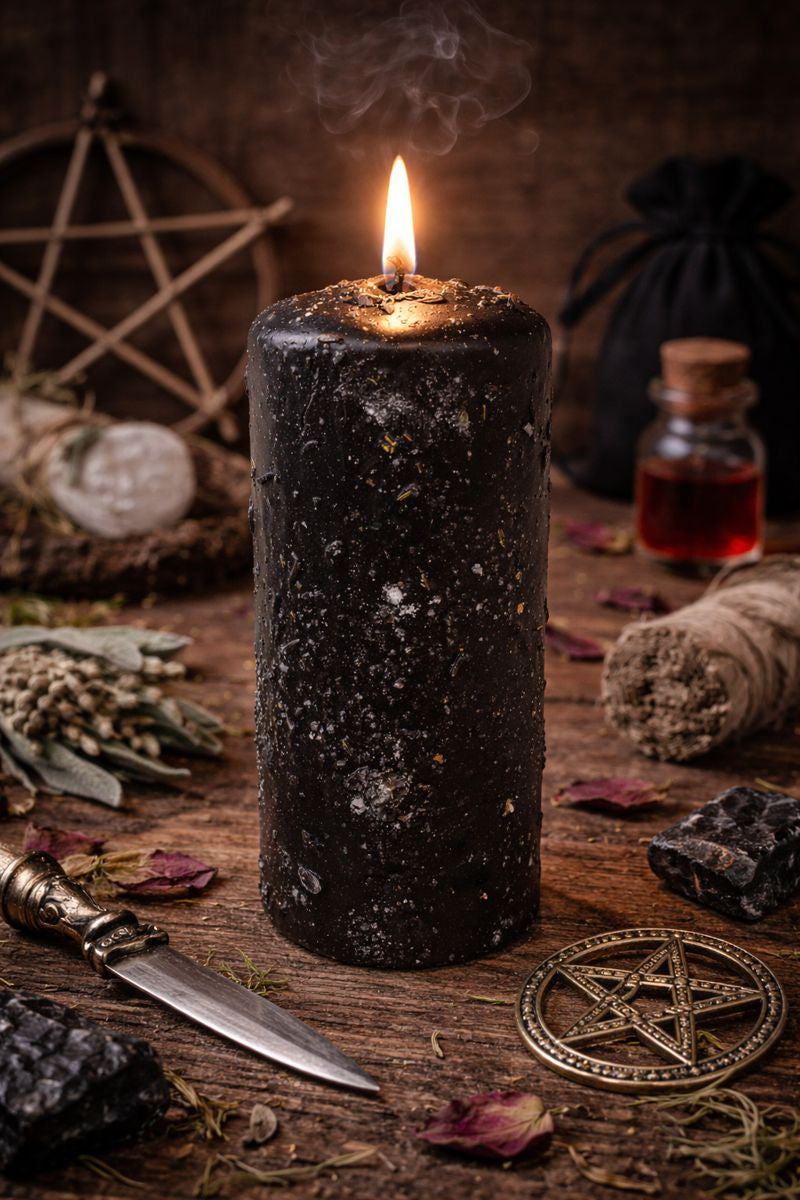 The Large Candle Against Witchcraft and Love Spells is designed to break energetic ties , neutralize negative influences, and strengthen spiritual protection. Its ritualized preparation helps cleanse external burdens, release blockages, and restore energetic freedom to the individual and their environment.