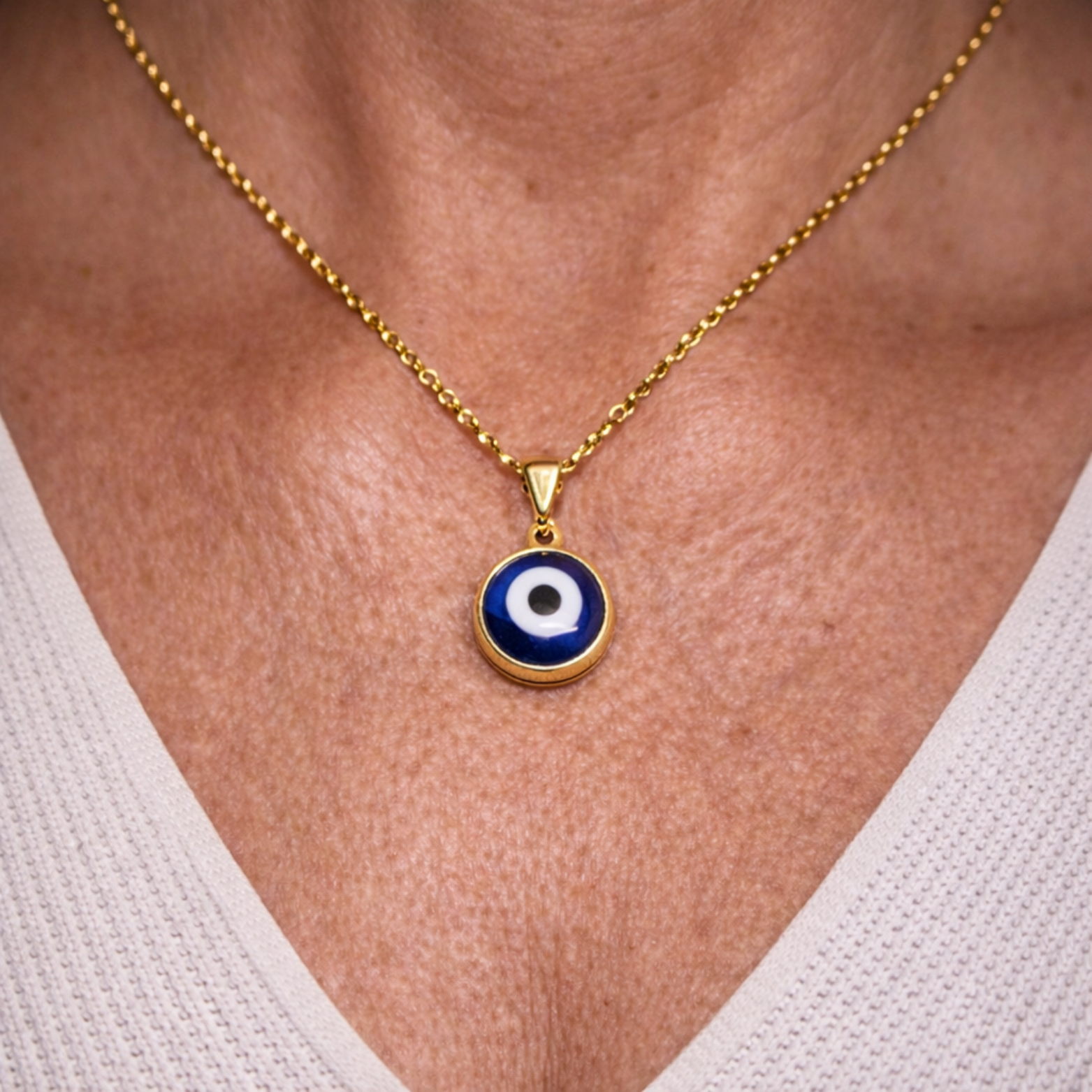 El Colgante de Ojo Turco Azul es un amuleto ancestral de protección contra el mal de ojo, las envidias y las malas energías, símbolo de luz y armonía que atrae fortuna y bienestar a quien lo lleva.