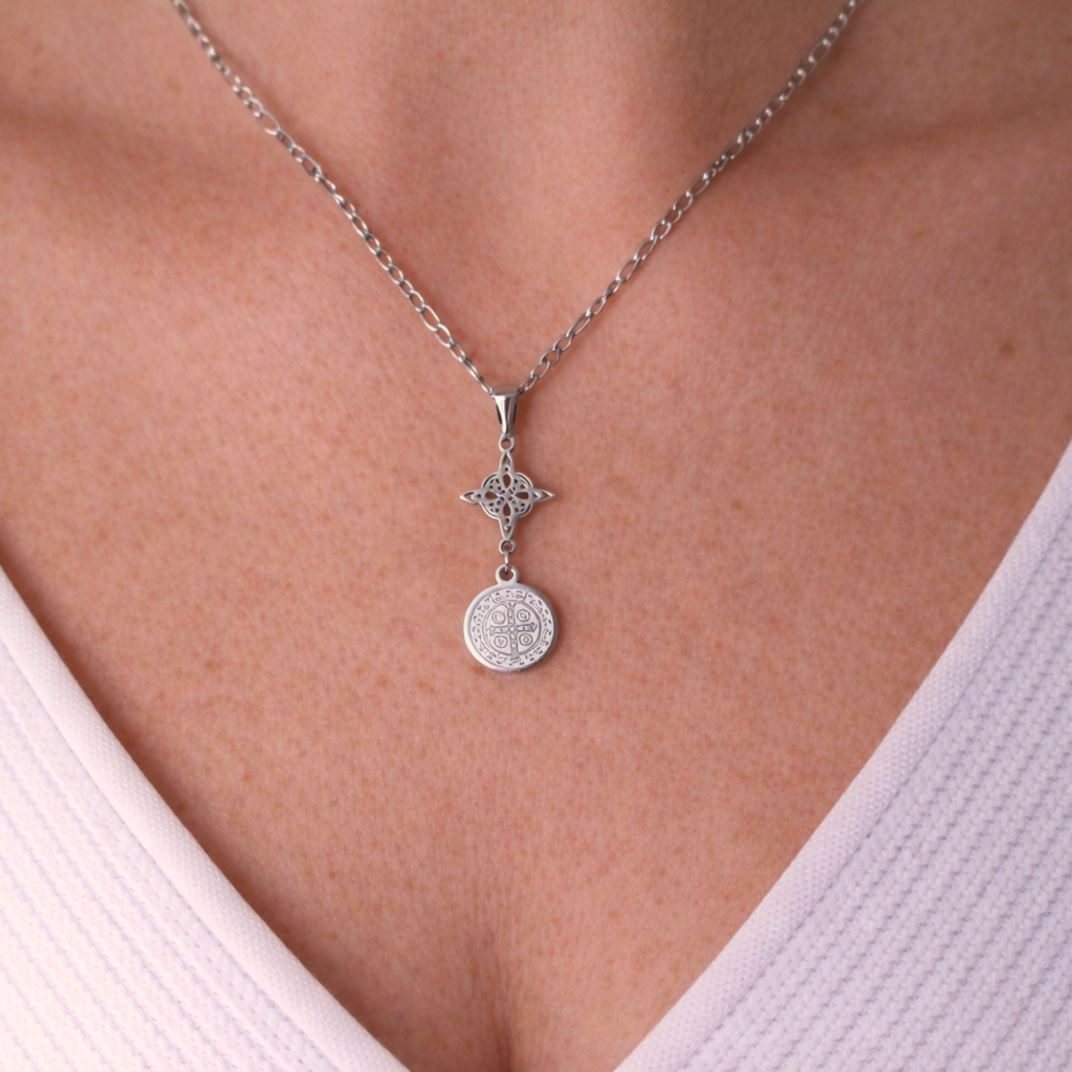 El Colgante Nudo de Bruja y Llave de San Benito es un amuleto espiritual de doble protección, activado y ritualizado por Jabifus siguiendo rituales sagrados heredados de sus antepasados, enfocados en la protección energética, el sellado espiritual y la defensa frente a influencias negativas.