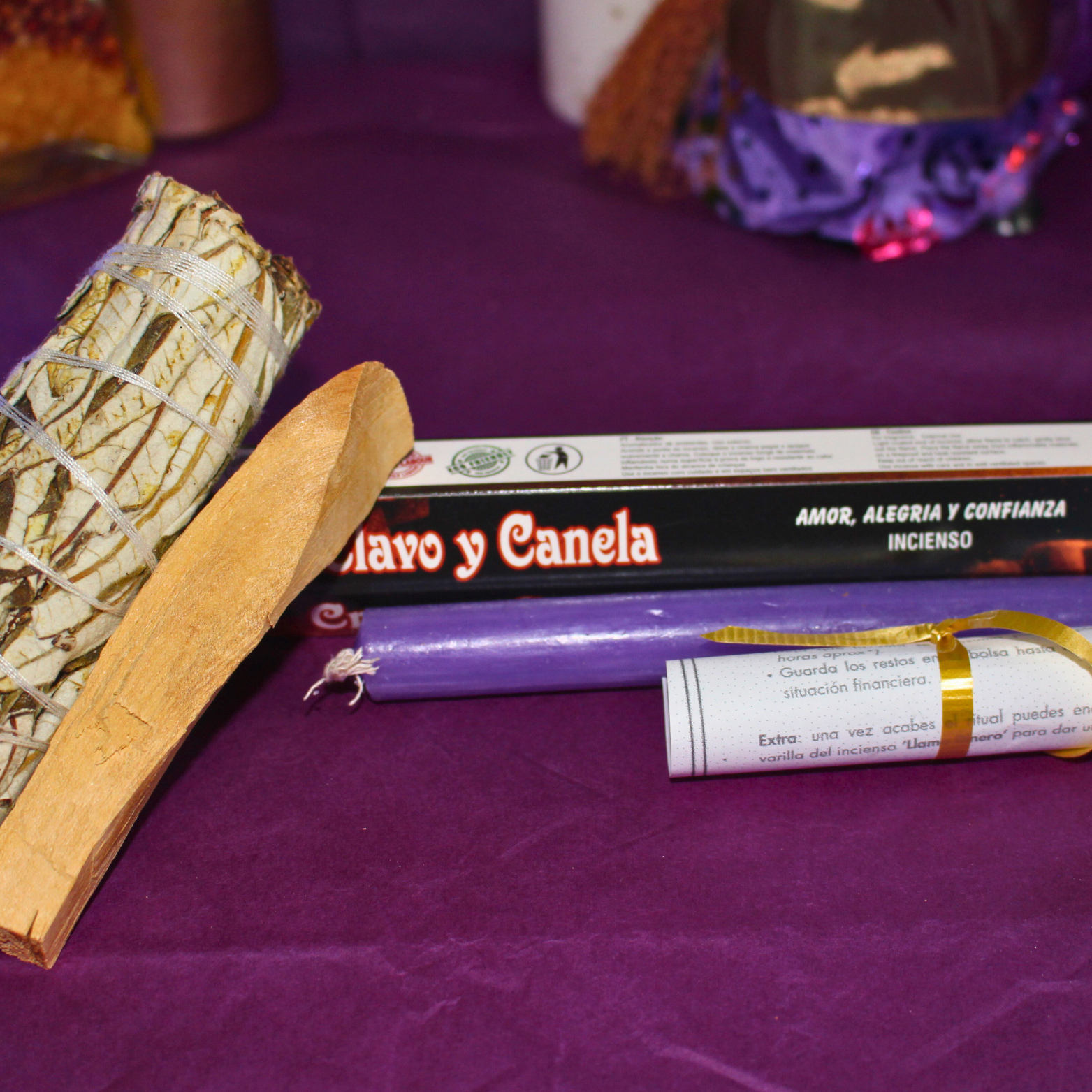 🌳 Palo Santo — limpia, protege y eleva la vibración del espacio antes de iniciar el ritual.